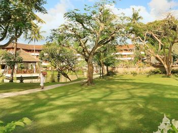 Красивая территория отеля. Много цветов и деревьев. Все в едином стиле балийских храмов.