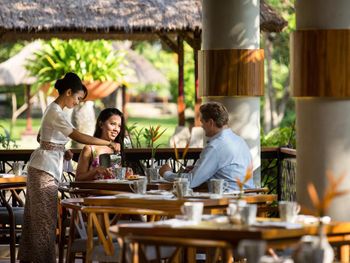 В Nusa Dua Beach Hotel & Spa, Bali предлагается завтрак «шведский стол» или халяльный завтрак. При Nusa Dua Beach Hotel & Spa, Bali работает ресторан, где подают блюда индонезийской кухни, блюда японской кухни и блюда тайской кухни. Гости могут попросить приготовить вегетарианские, халяльные и безглютеновые блюда.
