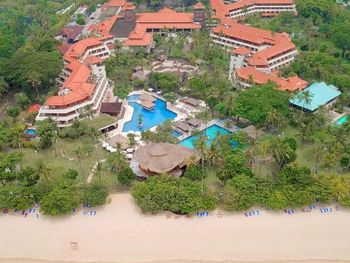 Отель расположен на первой береговой линии, в 10 минутах пешком от центра Bali Collection. Красивый пляж, расположен в бухте, мелко, хорошо купаться ребёнку. Взрослым плавать невозможно из-за мелкоты и водорослей, можно постоять или полежать в воде))