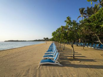 Всегда можно найти свободный лежак и у бассейнов,и на пляже.
