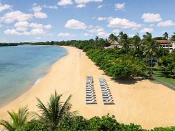 Территория красивая конечно, много деревьев, цветов, белочки бегают, но лежаки пластиковые, и у бассейна, и на пляже, ни у одного отеля вокруг нет пластиковых!