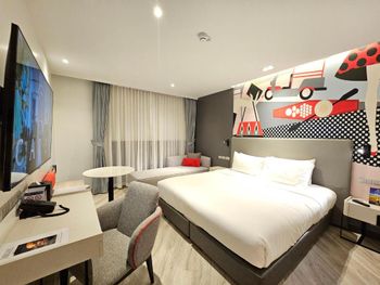 Слышимость между номерами. Забывчивость персонала (постоянно не докладывали полотенца, выносили мусор частично). Завтрак совершенно не интересный для европейца. Локация - вроде одна станция до активной жизни, но как будто живёшь на отшибе. И 500м до станции метро напрягает. Такси вызывать, можно ждать час. Подводя итог, скорее цена >100$ за ночь завышена