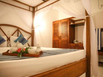 У нас возникли непонятки с самого момента заселения в свой номер. Показывали нам лучшие номера и цену за эти лучшие номера нам говорили ту, за которую мы бронировали на Букинге. А в итоге выяснилось, что номер у нас на категорию ниже, но по той же цене, как и самый лучший... а нашим друзьям, которые бронировали обычный стандартный дали такой же, как и нам, только дешевле на 30 долларов в сутки. Был скандал, мы просили как-то компенсировать нам это недоразумение, но персонал не пошёл нам на встречу. Теперь о самом номере: в номере было грязно, после хождения по нему 15мин босиком - ноги были чёрные! Вода из кранов течёт желто-коричневого цвета. В душе нормально помыться вообще не представлялось возможным, потому как напора воды скорее не было, чем он был. Про завтраки, которые включены в стоимость номера: для нас было неприятным удивлением, что это был не шведский стол. Ты приходишь на завтрак, садишься за стол и начинаешь ждать... самостоятельно можно налить только чай, кофе или безумно разбавленный водой сок. Процесс завтрака занимал довольно приличное время, сначала приносили фрукты, потом все остальное с продолжительными перерывами. Нас было четверо за столом - мы с женой и наши друзья и было такое впечатление, что то, что нам приносили на кухне выделял жадный повар, который считал, что крохотной пиалы с джемом и 6 микроскопических кусочков сыра было достаточно для всей нашей компании. Согласитесь, что если вы захотите добавки, то будет неудобно каждый раз дергать официанта и выпрашивать у него ещё еды. На ужины мы ходили в этот же ресторан, потому что не хотелось куда-то далеко идти. Чаевые за обслуживание уже включены в счёт. Это странно, учитывая тот факт, что обслуживание в ресторанах Шри-Ланки оставляет желать лучшего. А в нашем случае это вообще был трэш! Официант вообще забыл о части нашего заказа, который мы ждали более часа.