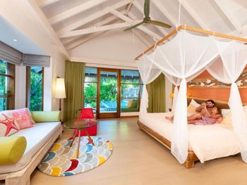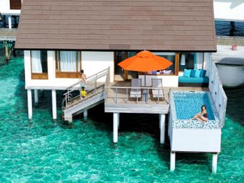 понравилось , что трансфер входил в стоимость отела ( собственно это и подкупило), еда была домашней , персонал отзывчивый , хорошая уборка , вилла комфортная ( у нас была с бассейном ) , остров зеленый , водная горка , быстро заселили , наличие 2 острова днем работает только для взрослых , массаж в спа брала 2 раза с маслом , богатый риф : черепахи , скаты , акулы и рыбки разные