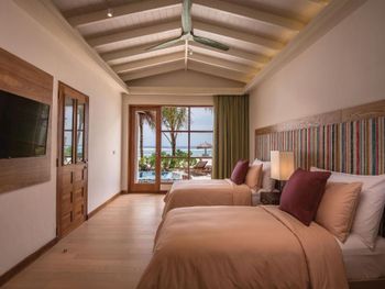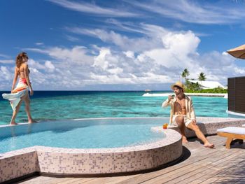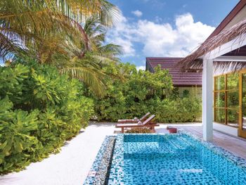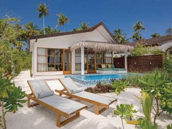 Очень хорошие виллы с бассейном, настоящий Мальдивский песок, добрый и заботливый персонал.
