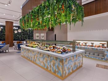 Потрясающий отель! Классный ресторан, завтраки и особенно ужины! Была в Дубай в 4 отелях, примерно одной ценовой категории, этот отель лучший. На ужин огромное количество реально вкусных блюд, мясо, салаты, десерты.