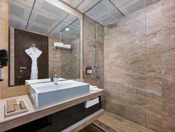 Кровать слишком мягкая, из-за чего тело ночью в состоянии гиперболы. В номере отсутствовали: зубная щетка, ушные палочки и ложка для обуви. Два дня до отъезда в номере не убирались и не меняли полотенца. Бассейн на теневой стороне, поэтому в нём ни кто не купается. Конденионер не менял температуру при регулировании. В номере сыро. Транспортная доступность плохая. Вокруг отеля, в районе, нет нормальных тротуаров, поэтому при ходьбе пешком до остановки автобуса или метро (20 минут) обувь будет в пыли. Ещё со стоимостью номера какие-то фокусы (будьте внимательны). Шумоизоляция слабая, слышно как гудит, на низких частотах, оборудование (видимо система конденционирования/вентиляции на крыше) и слышны голоса соседей по ночам.