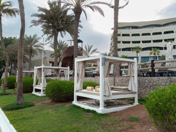 Неудобные лежаки, вечером нельзя выйти на пляж, нет территории, где погулять.