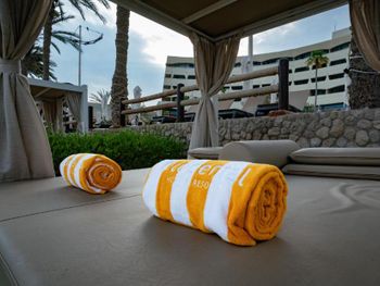 1. Много лет езжу в ОАЭ, но с такой проблемой столкнулась впервые: уже в 8 утра все лежаки на пляже заняты! На них лежат полотенца... Не знаю во сколько их выкладывают и какая система захвата - на отдыхе просто не хочется в это вникать. Но итог: места на пляже все заняты, у бассейна свободнее. В отеле везде написано, что нет системы резервирования лежаков и персонал имеет право убирать полотенце, если их владельцев нет больше 30 минут. Но естественно этим никто не занимается. Второй минус: отель предоставляет трансфер в Дубай, а именно в Дубай Молл, раз в день. Бронирование происходит электронно через их систему Barcello. Но! На практике записаться практически невозможно - мест нет на несколько дней вперед.