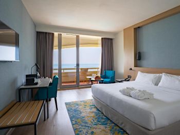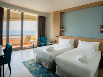 Очень вкусная и разнообразная еда. Шикарный большой пляж с чистым светлым песком, небольшим количеством рыбок, крабиков. Подогреваемый бассейн. Всегда хватало лежаков, полотенец, еды, воды, столиков. Красивая ванная комната в номере. Улыбчивый персонал. Бесплатное такси от аэропорта до отеля. Номер был с видом на город и дорогу. Шум от дороги не мешал спать. Спокойно спали.