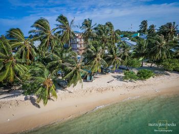 Отдыхали в отеле 4 дня. Отель хороший, номер был с видом на океан на 3 этаже. Если не повесить на ручку двери карточку, что надо убраться, не уберутся, только воду под дверь поставят. Завтрак типичный для гест хаусов, как впрочем и для Мальдив.