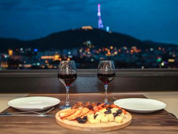 1)Сначала поднялись на терассу посмотреть вид на ночной город, там оказалась какая-то алкогольная тусовка из трёх человек,одна из них работница ресепшена и нас попросили приходить сюда в другой раз!