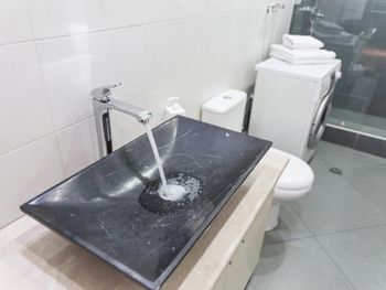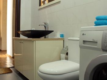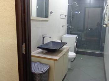 Нет сухой полочки для вещей в душевой комнате.