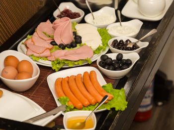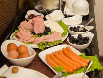 Завтрак не грузинский: сосиски, творог, нарезанные овощи, сыр хохланд, масло, хлеб обычный не грузинский, сварили вкусный кофе по-турецки.