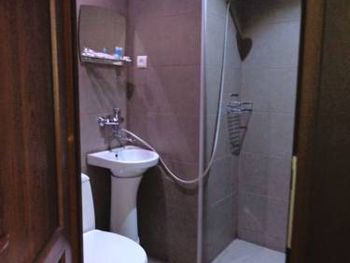 В нашем номере был странный кондиционер, который тарахтел и завывал как старый холодильник. При выключенном кондиционере тише не становилось - во дворе под окнами постоянно идет жизнь. Вода из крана брызжет во все стороны, так что помыв руки, выходишь весь мокрый. В душевой очень темно. Скрипучая кровать.