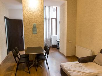 Прекрасный небольшой отельчик в старом центре Тбилиси, замечательный, приветливый персонал, помогали нам с любым вопросом. Очень чистый отель, замечаешь это, только войдя в него. В нашем номере была двуспальная кровать+односпальная+диван. Матрасы новые, удобные, бельё, полотенца тоже всё новое, чистое. Есть холодильник, кондер, тв. На окнах имеются плотные шторы, можно зашторить и спокойно спать) утюг, фен и всё остальное-по запросу у персонала, у них как у "яндекса" - найдётся всё!) У отеля очень удобное расположение, всё в шаговой доступности, кафешки, магазины, достопримечательности!!! У отеля своя небольшая закрытая территория (столы,стулья,зонтики), где проходят завтраки, а также можно посидеть в любое время суток, попить чай/кофе и т.д. Рекомендую этот отель однозначно, когда поедем в Тбилиси снова, вернёмся сюда обязательно!!!????????❤