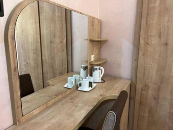 Жаль, что нет кухни хотя бы в общем формате. Но при размещении на несколько дней можно пережить. В номере есть холодильник, чайник, чашки, так что не особо страшно.
