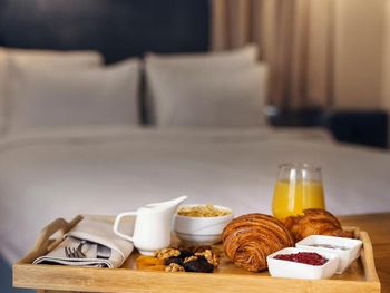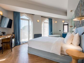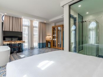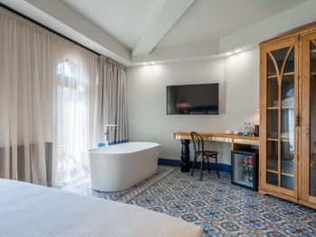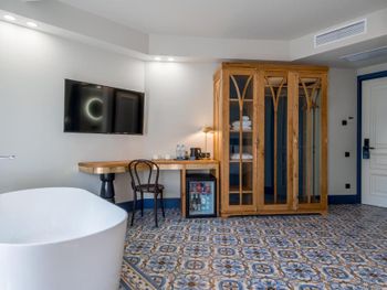 Бронировал люкс. В номере нет даже штопора, пришлось идти на ресепшен чтобы открыть бутылку вина. Бокалы в номере также отсутствуют, но опять таки дали на ресепшен. В номере стоит большая ванна, но ни тумбочки ни какой-нибудь вешалки чтобы положить, повесить полотенце … воспользовался стулом, принесенным из спальни. Завтрак неплохой, но время начала 8 утра, считаю это поздно. В день отъезда выезжал из отеля в 8 утра- завтрак еще не был сервирован, не удалось выпить даже кофе.