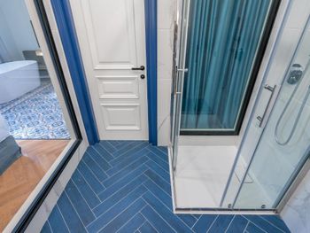 Скорее пожелание, чем замечание, необходимо переделать затирку в душе.