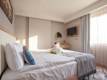 Сәлеметсіздер ма? Осы қонақ үйде 3 күн болдық. Орналасқан орны өте керемет. Ыссы су, сүлгілері, шағын бөлмесі жақсы жасалған. Күнде келіп тазалап, су қойып, шәй толықтырып кетеді. Levent бізді қонақ үйде күтіп алып барлық сұрақтарымызға жауап беріп жақсы қызмет атқарды. Тегін бассейні бар, қаласаңыз спа қосуғада болады. Қаланың қалаған точкасына қиналмай автобупен де таксименде жетуіңізге болады. Турмен қыдырамын десеңіз ол да бар.