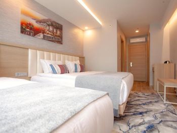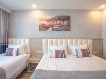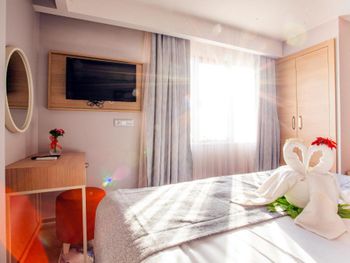 С 2006 года отдыхаю в Турции, первый раз останавливалась в таком отеле, где тебе никто не рад). В прямом смысле этого слова, вы никогда не услышите здравствуйте, доброе утро, приятного аппетита, как вам отдых)? Что очень неприемлемо для Турции. Отель не тянет на 4 звезды. Он старый, мебель старая, стены обшарпанные, полотенца рваные, серые, из кабины в ванной комнате бежит вода, если чуть задержишься с помывкой, то вода пробежит и в номер. Завтраки как в 3-звездочном отеле, оставшуюся с вечера еду выставляют утром. Например, поставят тарелку с холодными макаронами, которую зальют кетчупом или тарелку с холодным рисом посыпанную сверху укропом. Кофе ужасный. Официанты как-будто на расстрел пришли, все унылые, недовольные, неприветливые. Ужас. На ресепшене все тоже уставшие, ни один ни разу не поздоровался. Постоянно сидят курят возле входа в отель, потом сидят прокуренные на ресепшене. Очень пожалели, что выбрали этот отель. Рядом было много других отелей, намного дешевле и с хорошими отзывами. Подумали, что в 4 звездах будет намного качественнее обслуживание и лучше комфортность проживания, но очень ошиблись. Не рекомендую этот отель, он не стоит заявленных денег.