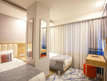 На следующий день Сняли другой номер в отеле рядом, персонал предоставил двухместный номер для 4 человек, в виду того, что у нас был поздний выезд, то есть мы не ночевали в номере. И цена была очень даже приемлемая.