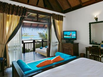 Относительно новые водные виллы grand water villa находятся на втором острове отеля (dream island), что отлично для желающих уединиться и прочувствовать, что такое Мальдивы (тк основной остров достаточно шумный, и по вечерам похож на Турцию)) Но если у Вас FB, то в ресторане на dream island будут сервировать только завтрак и ужин, а на обед надо будет идти/ехать на основной остров. Также туда придётся добираться, если Вы хотите заняться водными видами спорта или отдать ребёнка в детский клуб (в котором кстати есть русская девушка-воспитатель). От grand water Villa до ресепшн и ресторана на основном острове идти пешком минут 15-20, гольф-кар курсирует постоянно, но часто нет мест… Вообще отлично, что в этом отеле разрешено размещение на водной вилле с ребёнком. Нашему 6,5лет и он умеет плавать, ему очень понравилось! Ночью к нашей вилле приплывали акулы и скаты. Также всю живность вечером можно увидеть на пирсе у дайвинг центра (основной остров). Еда в ресторанах отеля однообразная, но в общем и целом данный вариант - хорошее сочетание цены и качества!