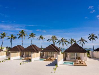 Были с 7 по 22 января 2021. Бич вилла без бассейна. Старовата, но не критически. До моря реально метров 10. Залив без кораллов, спокойная вода. Кораллы далеко, с другой стороны острова, идти по понтону. Приехали в переполненный отель. В ресторане вообще не поняли, что происходит. Народу толпы, критически недостаточно официантов. На любую раздачу еды очередь. Столы грязные. Убирала грязную посуду на соседний стол, чтобы посадить семью. Напитки несли мин по 15. Часто забывали про заказ. Сама еда плохая, турецкая «трешка». И вот так мы прожили неделю. Были сильно расстроены, тк без билетов отель обошёлся порядка 750 тр на 2 нед. Природа, погода класс, остальное плохо. Вторую неделю нам невероятно повезло, если можно так сказать. В отеле кто-то заболел ковидом. Туристы только выезжали, но не приезжали. Наконец-то битва за еду в столовке прекратилась. Официанты стали все успевать. Еда по качеству лучше не стала, но добавились какие-то более-менее разнообразные блюда, появился выбор. Вообще персонал хороший, старается, просто его критически недостаточно. Русский гид Ольга тоже хорошая. В общем, дай Бог здоровья этому ковидному больному. Благодаря ему впечатления первой недели скрасились. ОБЯЗАТЕЛЬНО берите all inclusive или полный пансион. Цены на все дикие. Ужин в индийском ресторане на 2 взр и 2 дет - 350 долл. Плохие коктейли в баре - по 16 долл. Кокос - 10 долл. Вывод: наплыв русских превратил элитный отдых на Мальдивах в 3-звездочную Турцию. С тоской вспоминаем две прошлые поездки. Надеюсь, после пандемии все снова распределятся по тайландам и тд и потерянное качество отдыха на Мальдивах вернется.