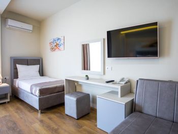 - Отель расположен на главной набережной дороге и постоянный шум от машин - отель свеженький, и могут быть не большие косяки в отделке номеров, у нас сыпался песок из вентиляции в ванной - персонал с южной расхлябанностью, они забыли отметить, что мы расплатились при въезде и требовали оплату при выезде, а чек мы к тому времени выкинули - завтрак невкусный при ресторане, хотя ресторан выглядит дорого