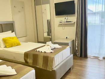 Очень приличный и хороший отель. Очень чистые номера. Доброжелательный и отзывчивый персонал. Были приятно удивлены тем, что объект принадлежал нашим соотечественникам. На первом этаже есть ресторан Кавказ, где подают блюда Азербайджанской кухни. Есть много пляжей поблизости.