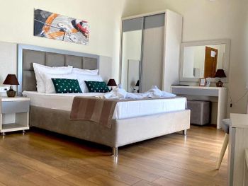 Отель для тех, кто на авто. Море не очень далеко, но пляжи бывают и лучше. Отель у дороги, есть парковка. Мы останавливались на 4 дня и в основном путешествовали, купались по дороге. Завтрак был включён, в последний день нашего пребывания сделали шведский стол. Ресторан очень хороший, вкусно, относительно недорого и быстрое обслуживание. Ужинали всегда в Олимпии, рекомендую! Персонал и в ресторане, и в отеле замечательный, очень приятные люди! Номер просторный, окнами на дорогу, но звукоизоляция хорошая, спать было комфортно. Чайника в номере нет, но на рецепции есть кулер с горячей водой, чай-кофе можно заварить.