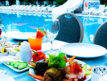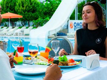 Нам все понравилось: персонал, еда, расположение. Приятно было загорать под апельсиновыми деревьями возле бассейна, аниматоров мы почти не видели, при нас особой активности от них не было, но для нас это скорее плюс. По еде нас тоже все устраивало, вкусные супы, скумбрия, курица, за 9 дней один раз на мангале готовили люля-кебаб и один раз была тушеная говядина. Выбор небольшой, но все вкусное и качественно приготовлено. Очень нравилось по вечерам на ужине сидеть с бокальчиком вина в апельсиновом саду. У нас остались только приятные впечатления. Спасибо персоналу за их труд.
