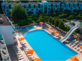 Отдыхали в апреле в этом отеле! Отель хороший, нам понравилось. До моря минут 10 пешком. Сам отель чистый, ухоженная территория, еда нормальная. Брали много эксурсий в Sultan тур ( на углу сразу как выходишь из отеля продают экскурсии). Ездили на турецкие мальдивы, динопарк, спа, в Анталию. Также ходили в Гёйнук каньон. Отдых понравился!