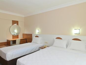 Бронировал два двухместных номера эконом варианта на сутки просто переночевать. Приехали около 11.00. Заселили ровно в 14.00. Правда, сразу по приезду надели браслеты и покормили в 12.00. Персонал приятный, приветливый. Номера хоть и эконом, но чистые и уютные. Кухня для такой стоимости просто шикарна - большой выбор блюд и всё очень вкусно. По соотношению цена-качество очень хороший вариант.