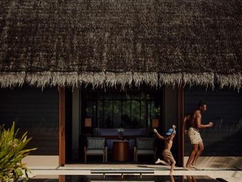 Каждая вилла из соломы и дерева авторства Жан-Мишеля Гати искусно спроектирована так, чтобы обеспечить непревзойденное уединение в очаровательной атмосфере непринужденности. От виллы на уединенном побережье, окруженной пышной зеленью, лишь несколько шагов до собственного участка песчаного пляжа. Из виллы над водой можно сразу окунуться в бирюзовые воды моря.Почувствуйте уникальность непревзойденных моментов, которые дарит море, — займитесь фридайвингом, попробуйте поймать рыбу на ужин или поплавайте с акулами-няньками.