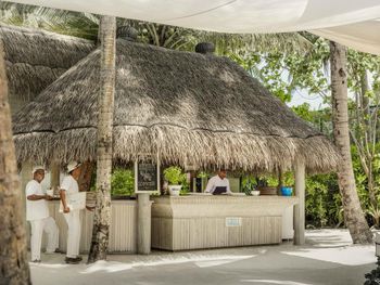 Каждая вилла из соломы и дерева авторства Жан-Мишеля Гати искусно спроектирована так, чтобы обеспечить непревзойденное уединение в очаровательной атмосфере непринужденности. От виллы на уединенном побережье, окруженной пышной зеленью, лишь несколько шагов до собственного участка песчаного пляжа. Из виллы над водой можно сразу окунуться в бирюзовые воды моря.Почувствуйте уникальность непревзойденных моментов, которые дарит море, — займитесь фридайвингом, попробуйте поймать рыбу на ужин или поплавайте с акулами-няньками.