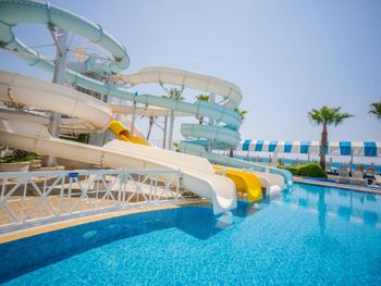 Из плюсов. Много всего для детей. Горки 3 варианта от малышей до подростков, детский клуб до 12 ночи , вот прям топ) девочки все очень хорошие! Мини диско. И шоу после. Бассейны. Море в 2 шагах. Номера очень приличные. Лежаков было очень много. Всем хватало