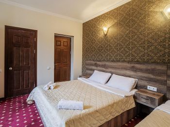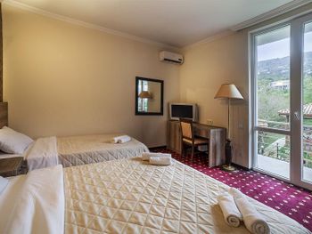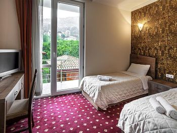 В номере была сломана ручка на двери шкафа, отсутствовал гель для душа, уборка не проводилась три дня, пока мы сами не попросили персонал отеля в нашей комнате поубирать. При отеле нет кафе-ресторана, хотя на сайте хозяева описывают отель с возможностью пообедать и поужинать, мы ходили в другое место (не буду делать рекламы, люди сами найдут, оно по пути с дороге...). Персонал замкнутый, во время завтрака здороваемся, после завтрака говорим спасибо - ноль внимания(( только Александр, пожилой мужчина, видно отец кого-то из собственников отеля, у нас что-то да спросит - как дела, как спалось и т.д. Плохо, что не предложили никаких экскурсий, не было советов куда пойти, покушать и тд, были предоставлены сами себе... я ожидал, что будет кавказское гостеприимство, а тут такое...