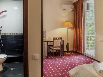 Подуставший номер, пора небольшой косметический ремонт и сменить матрас двухспальной кровати. Как вариант разрешить самому пользоваться стиральной машиной, закидывать и доставать его. Как то не комфортно, когда твоё нижнее белье стирает и сушит персонал.