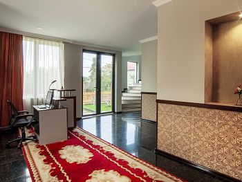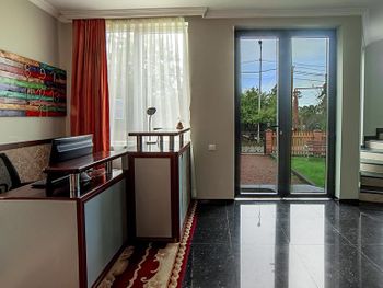 Потрясающие, разнообразные, сытные,вкусные и плотные завтраки на свежем воздухе в беседке. Вечерком там же можно покушать фрукты и выпить вина, свежий воздух с гор. Отзывчивый рабочий персонал администраторов и женщин. Отдыхали на четвёртом этаже.На каждый этаж свой вай-фай с паролем. В номере всё соответствует описанию. 3 куска мыла и 3 маленьких тюбика шампуня как в отеле, фен, туалетная бумага , беленькие чистые полотенца, белое чистое постельное белье, кондиционер , телевизор,стол, шкаф, балкон с видом на море. Ремонт хороший , но немного уже подуставший.Особенно матрас двухспальной кровати, пора бы сменить. В номерах и в коридорах чисто.Ковры на коридорах видно каждый день убирают и пылесосят.На 5ом этаже за отдельную плату можно отдать женщинам работникам постирать и просушить бельё. Немного имелся вид на море. Не шумно совсем,спать ночью отлично. Дорога не центральная, однако каждый ~10-15 минут проезжает маршрутка #20 можно доехать в Батуми. Либо по дороге к морю пересекается центральная дорога , там уже идёт #16 маршрутка и #88. До моря минут 5 хотьбы через хорошие кафешки. Свой большой двор для стоянки автомобилей. В целом все хорошо, недостатки устранимы.