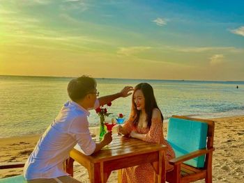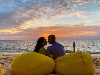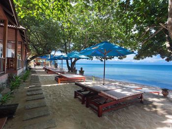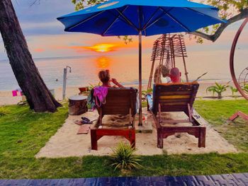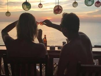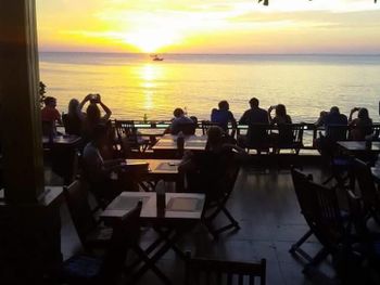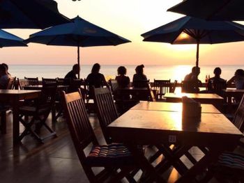 Свои лежаки . Красивый ресторан на пляже с видом на закаты.