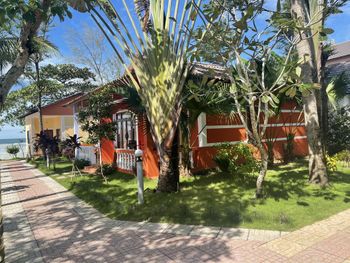Отличное место расположения, хорошие бунгало на берегу моря. Отличный массаж на берегу, хорошие завтраки. Удачное месторасположение относительно объектов городской инфраструктуры (ночной рынок 15 мин пешком или 2 остановки на автобусе, обилие массажных салонов, кафе в шаговой доступности). Отличная зелёная территория, отличный персонал.