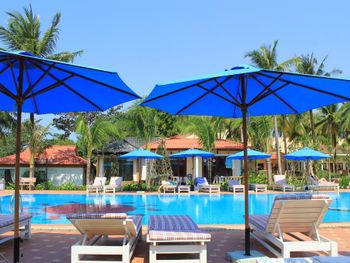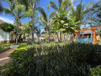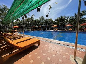 Отдыхали с мужем и сыном 7 лет с 23 по 28 февраля 2025 года. Территория отеля шикарная, очень красиво, ухожено. Завтраки - каждый день одно и то же, но выбор большой. Номера требуют обновления мебели. Ужасно скрипят шкафы. Около бунгало есть стол, 2 кресла и сушилка для одежды. Полотенца и пляжные полотенца меняют каждый день. Пляж очень чистый. Немного расстраивало то, что после заката все матрасы с лежаков убирали. Не полежишь после заката под шум волн. По поводу чистоты есть некоторые недочёты. В ванной комнате стены давно не мыты. В шкафу для одежды было немного пыльно. Я просто протёрла сама всё влажными салфетками, не критично. По расположению удобно. До ночного рынка, до маяка можно дойти пешком. Вокруг множество кафе на любой вкус.