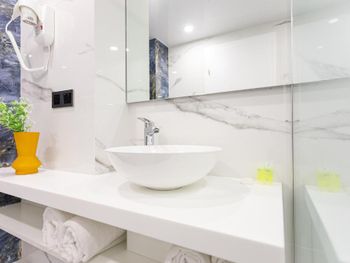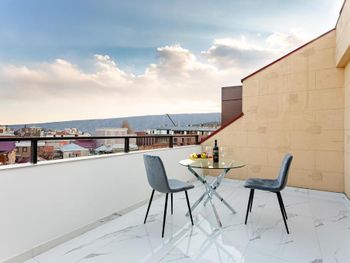 Бронировали апартаменты пентхаус с двумя отдельными спальнями. Все фотографии совпадают, номер очень понравился, были недочеты в виде мелкого ремонта, в туалете без звукоизоляции. Но нас лично это не волновало. Очень чисто. Отдельно благодарна за вид! Неожиданный бонус, просто супер! Брали с завтраками, просто в восторге! Ездили семьей: подросток, беременная в первом триместре и избирательный муж) всем зашло меню завтрака, очень сытно, всегда пополнялось! Был поздний заезд, выезд в 11, но есть комната для чемоданов, что дало нам возможность погулять налегке до самолета вечером)