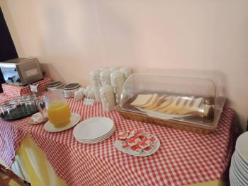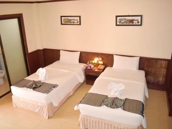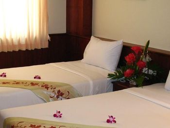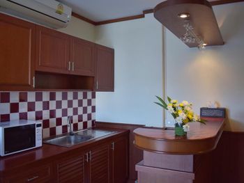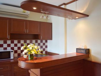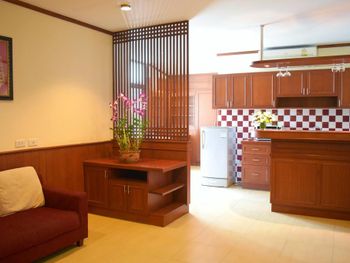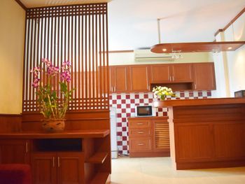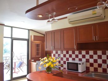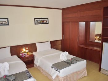 Неплохие затравки (за свою цену). Одно европейское блюдо, одно тайское, сосиски, яйца, хлеб, масло, джем. Овощи для салата, нектары "апельсиновый" и "ананасовый", чай из пакетиков в заварнике (терпимый), кофе неизвестного происхождения (мерзкий). Дают пляжные полотенца до 17-00 под роспись. Они не всегда бывают. До пляжа минут 7 вдоль речки вонючки, либо 15 по нормальной дороге. В непосредственной близости недорогие вкусные кафе (квонг сифуд, ред конер, пад тай шоп). Есть лифт.