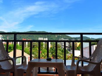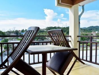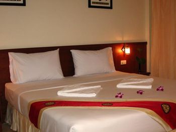Несмотря на большое количество недостатков у отеля есть неоспаримое преимущество - это его расположение. Во-первых, отель находится в непосредственной близости к пляжам Ката и Карон. До Ката-Ной пешком минут 20-30 минут. Во-вторых, отель находится рядом с ночным рынком Ката (а точнее прям на нем). Поэтому не надо далеко ходить за покупками, а также неплохо ежедневно питаться на этом рынке. Рядом находятся магазины, в том числе аж два 7/11, аптеки, агентства по продаже экскурсий, массажные салоны. В-третьих, в отеле отсутствует депозит при заселении. В-четвертых, и для меня это было важно, отель находится прям рядом с остановкой автобуса, который идет в аэропорт. И конечно, это приветливый и радушный персонал. Я не знаю, был ли это хозяин отеля, или его управляющий, но очень хороший и понимающий человек. Очень часто с ним находились его дети. Что еще больше располагало к нему. Номер большой. есть балкон с мебелью. На балконе есть сушки для белья. Уборка в номере каждый день, полотенца тоже меняются ежедневно. Однако постельное белье на 11 дней не сменили ни разу. Мыло, шампунь, ватные палочки, шапочка для душа, туалетная бумага регулярно пополнялись, также как и чай, кофе, сахар, вода. Душ работал исправно, с горячей водой и напором все в порядке. На завтрак придется ходить в основной корпус. Ресторанчики на 1 этаже работает только с обеда. Завтрак не очень богатый, но все есть, голодными не останитесь. Овощи, курица, рис и лапша, яйцо жареное и вареное, круассаны, фрукты (арбуз и ананас) всегда есть. Пополняются персоналом. Для номеров де люкс полотенца без депозита. Вода по 2 бутылки 0,5 л ежедневно. Когда ездила на экскурсии, то воды приносили 4 бутылки, видимо чтобы брать с собой. По просьбе готовили ранний завтрак с собой во время экскурсий, и в день отъезда. Как правило это хлеб, колбаса, масло, джем, фрукты, иногда вареное яйцо, малюсенькие сосиски.