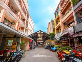 Отель расположен практически на самом ночном рынке и прямо напротив другого отеля. Окна в окна