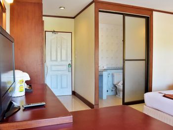 Первоначально возникли проблемы с заселннием. На ресепшн провела около 2-х часов. По условиям бронирования была указана предоплата с дебетовой карты. Отель должен был обработать платеж самостоятельно, списав деньги с карты в удобное для отеля время. Однако отель деньги не снял. Уже находясь в Бангкоке я предложила отелю списать с моей карты оплату. Отель отказался, предложив мне оплатить наличными, когда я приеду. На мой отказ, согласились принять оплату картой. Однако когда я приехала, оказалось, что принять оплату дебетовой картой банк отказывается, предлагая внести оплату кредитной картой, которой у меня не было:)) Мне предложили снять деньги в банкомате, или сходить в банк, который находится на кольце пляжа Карон. В качестве компромисса оплату произвела платежным переводом, потеряв при этом деньги за счёт комиссии банка (но это не много), а также курса рубля по отношению к доллару (за время, что я была в Бангкоке курс существенно изменился), так как платежный перевод был возможен только в долларах или евро. Я не знаю кто виноват - коронавирус, отель или ещё кто-то, но в итоге 2 часа на ресепшн, и потеря 1000 бат. Если бы отель выполнил свои обязательства и списал деньги в баттах, то мы сберегли бы время, деньги и нервы друг друга. Вход в корпус де люкс, где жила я, не поддается никакой критике. По сути это черный выход ресторанчика, который находится на 1 этаже. Тряпки, швабры, баки с водой и мешки с мусором являются его украшением. Чётная сторона окнами выходит на проезжую часть, поэтому в номере довольно шумно. Кровать кингсайз так только называется. На самом деле два сдвинутых матраса, которые никак не фиксируются, и разъезжаются при любой активности на кровати (легко можно упасть с кровати вместе с матрасом, проверено:)). Уборка в номере оставляет желать лучшего. Так и не дождалась, чтобы протерли пыльное и заляпанное зеркало. Полотенце для лица стали приносить только после того, как попросила на ресепшн. Не рассчитывайте на хороший wi-fi.