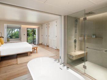 Выход на пляж, удобный матрас, приятный дизайн номера.