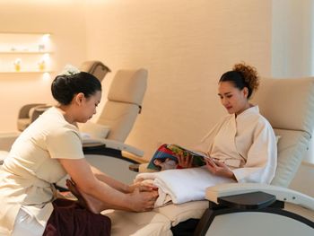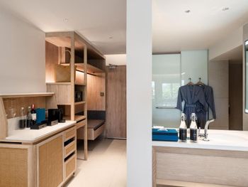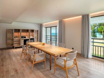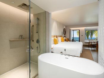 Скудный завтрак, территория отеля примыкающая к пляжу постоянно в мусоре, проводка к столикам на пляже брошена по песку и имеет очень неприглядную изоляцию. Есть место для мытья ног прям у пляжа - могли бы и поддон Сделать, а то Вода бежит под ноги другим людям((( в номере вместо спонжиков предлагают кусочки ваты скрученные ( для отеля 5 звёзд не солидно), постель ( подушки и одеяло хуже чем в отеле Dusit) по ощущениям не приятные, не комфортные. Зелени на территории мало. Рядом на границе территории стоит некапитальное здание - вид у здания ужасный, в этом здании хранят Оборудования для водных развлечений, внешний вид здания могли бы оформить и по приличней (очень страшное на вид и в общем смотрится как будто относится к отелю). В целом всё в отеле не радует глаз, мрачновато и старовато.